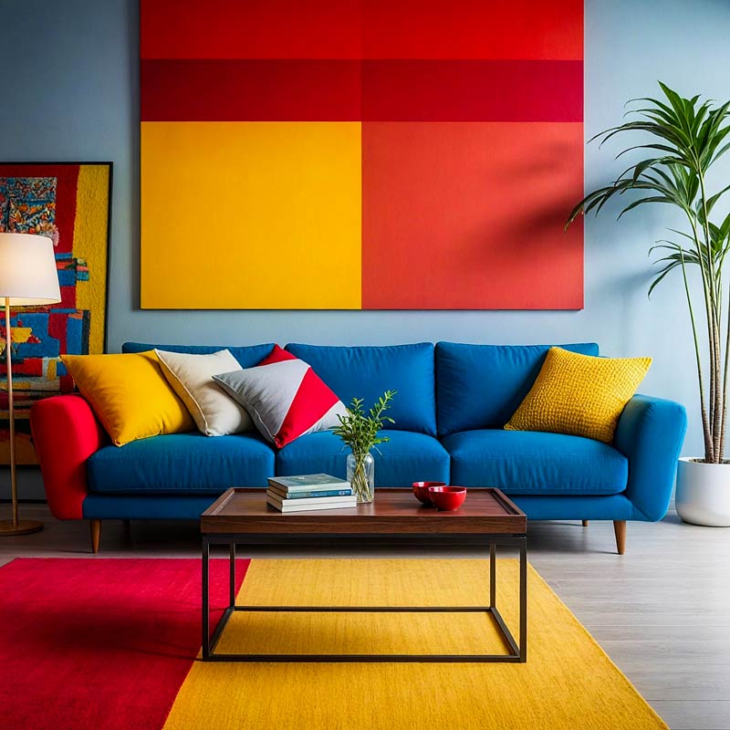 Folosirea culorilor complementare este un truc des întâlnit printre cei care vor un spațiu dinamic, care creează impact. Culori complementare care sunt printre preferatele alegătorilor acestui stil sunt: roșu-verde, mov-galben, albastru-portocaliu.