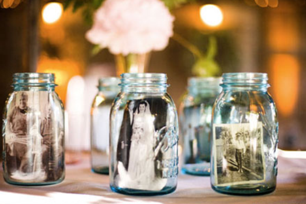 Interesant pentru cei care vor să-și expună la vedere un album cu fotografii de familie este acest mod de a pune fotografii în borcane. Se realizează foarte simplu și au un cost scăzut. Este perfect acest mod și pentru cei care vor să organizeze o nuntă în stil vintage fiind ideală ideea de a include fotografii de familie sau fotografii cu, cuplul căsătorit.