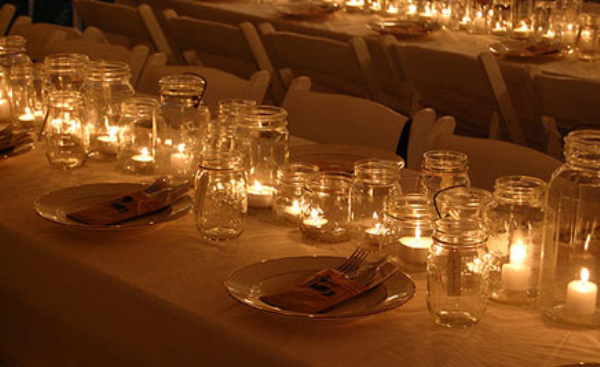 Puteți creea foarte simplu sfeșnice din borcane goale în care se pun candele care pot fi și parfumate. Când le aprindeți acestea vor reflecta o lumină caldă, plăcută, parfumată și romantică. Se pot obține și felinare pentru grădină originale decorând fiecare borcan cu mărgele, fundițe colorate sau cu, culori diferite. Apoi atârnațile în copaci cu un cablu sau sârmă și puneți câte o lumânare sau candelă în interiorul lor. Veți creea astfel o sursă de lumină în grădină sau pe terasă.