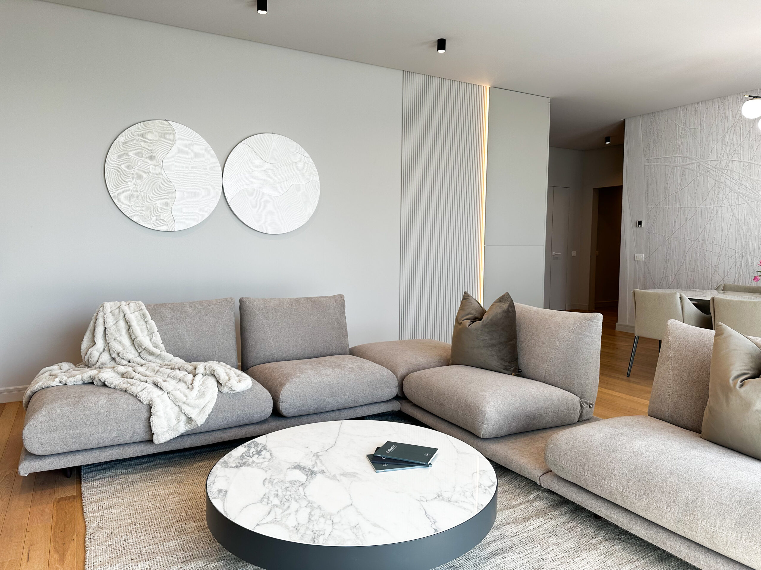 Pentru Andreea, inspirația începe cu spațiul însuși. „În general, mă ghidez după proporțiile încăperii și lumina naturală – ele dictează desfășurarea unei amenajări.” Ulterior, intervin dorințele clientului și materialele alese, care definesc direcția vizuală a întregului proiect.