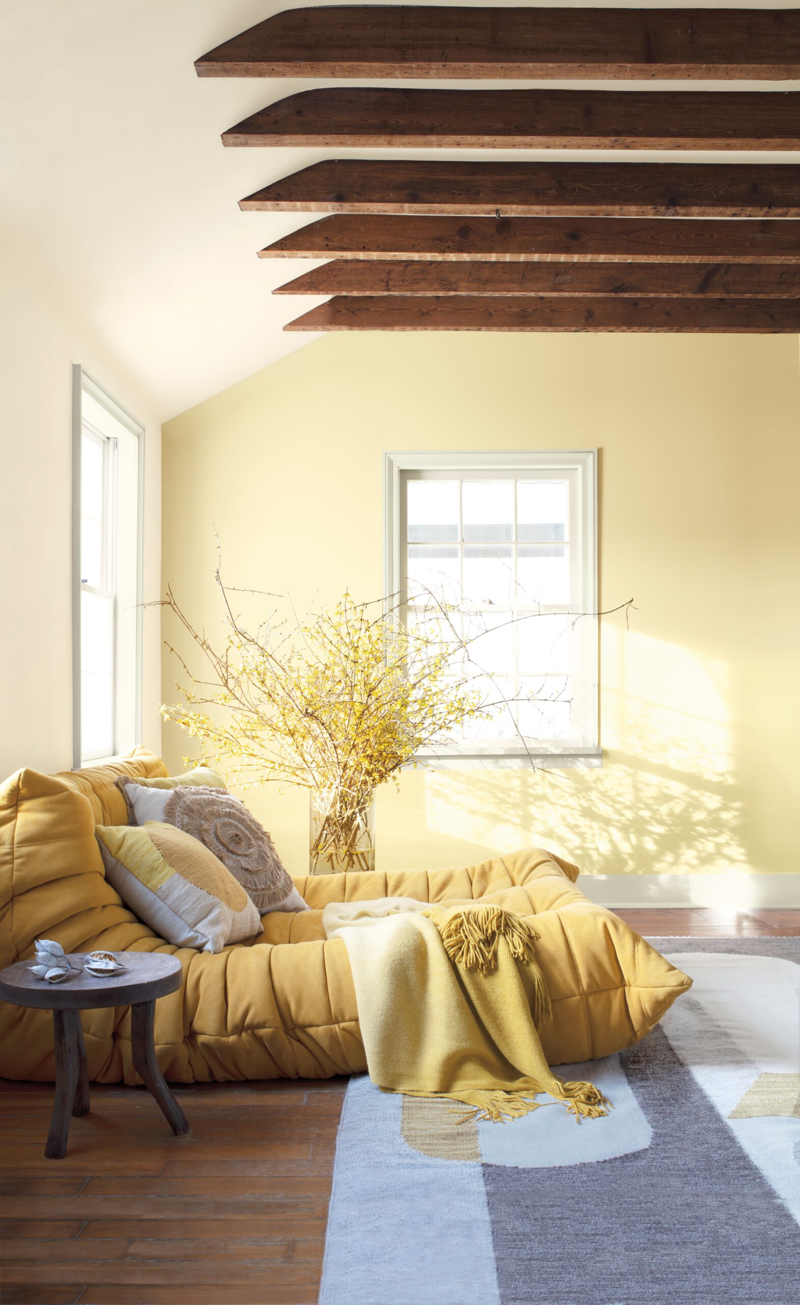 Dacă vara ar avea o culoare oficială în 2025, aceasta ar fi, fără îndoială, butter yellow. O nuanță delicată de galben untos, care aduce în interioare o lumină caldă, calmă, cu iz retro și un sentiment subtil de confort. Nu e nici galben solar, nici crem: e undeva la mijloc, exact cât trebuie pentru a încălzi o cameră fără a o agita vizual.