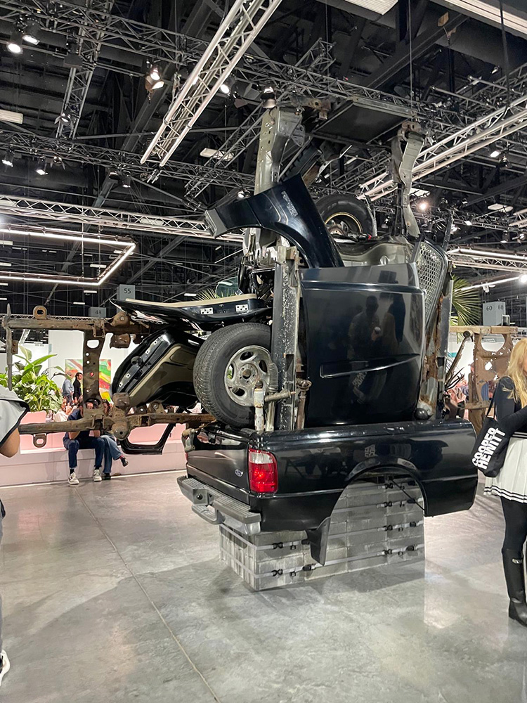 Galeriile americane îsi promovează artiștii proprii. În America este o producție mare de artă iar galeriile nu au interesul să aducă artiști din Europa de Est. Pe cei din Europa de Vest îi aduc galeriile europene. În general galeriile din Franța promovează artiști francezi, cele din Germania artiști germani, galeriile din Italia numai artiști italieni, cele din America de Sud , artiștii lor. Un artist de altă naționalitate este o excepție. Astfel fiecare galerie venită din altă țară decât America este o imagine în miniatură a țării sale în ceea ce privește producția de artă modernă și contemporană. Târgul este o platformă pentru expresia artistică actuală, indiferent că se expune pictură, sculptură, obiect, print, fotografie sau artă video. Personal, m-am simțit privilegiată să expun, printre atâția artiști talentați. Miami este în general un loc plin de viață, care reușeste să îmbine arta, business-ul și distracția. Am făcut multe fotografii, atât în exterior cât și în interior care zugrăvesc acest aspect. Pe câteva dintre acestea le puteți vedea mai jos.