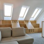 “Ideea a fost ca fiecare cameră să fie construită în așa fel încât să nu își piardă funcționalitatea, iar în același timp casa trebuie să respecte regulile de construcție din zonă, care impun folosirea acoperișurilor clasice”, a explicat Tadeusz Lemański. Astfel, arhitectului i-a venit ideea de a curba fațada și a o ridica pentru a integra garajul sub ea. În interiorul casei, pe această parte a fost amenajat dormitorul.