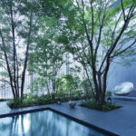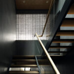 Efectul? O barieră vizuală și fonică eficientă. Deși blocurile de sticlă sunt transparente, ele difuzează lumina și formele, transformând agitația urbană într-o mișcare estompată, aproape abstractă. În spatele acestei fațade translucide, arhitecții au creat o curte interioară luxuriantă, plină de copaci (arțari, frasini, ilici), care se bucură de lumina filtrată. Ziua, lumina se joacă în dansuri spectaculoase pe pereții interiori, iar seara, casa strălucește ca un felinar urban, invitând la contemplare.