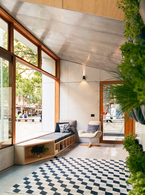 Cu un design contemporan și orientat spre confort, casa de 75 de metri pătrați este compusă din două segmente. O secțiune, denumită camera soarelui, este orientată spre nord și se întinde pe toată lungimea casei, având geamuri etanșe de la podea până în tavan.
