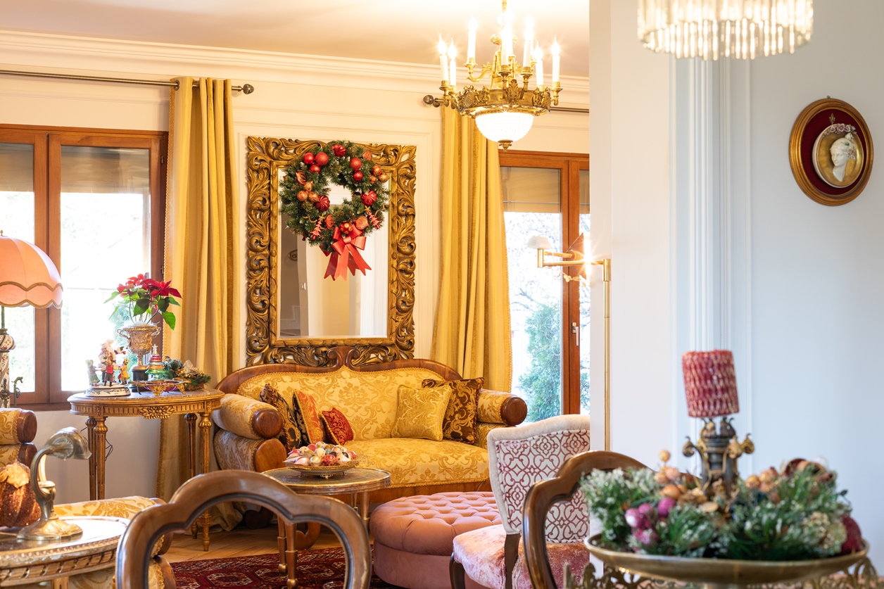Casa pe care o prezentăm este unul dintre astfel de cazuri. Este o casă somptuoasă şi distinsă care unor anticari, mari colecţionari de artă. Pentru Sărbătorile de iarnă, aceştia au apelat la designerul Corina Săftescu care, cu ocazia renovării casei, au dorit şi o decorare festivă. Fiind vorba de un interior elegant şi plin de opera de artă cunoscutul designer a mers pe linia unor decoraţii tradiţionale dar stilul clasic a fost adus în cheie modernă.