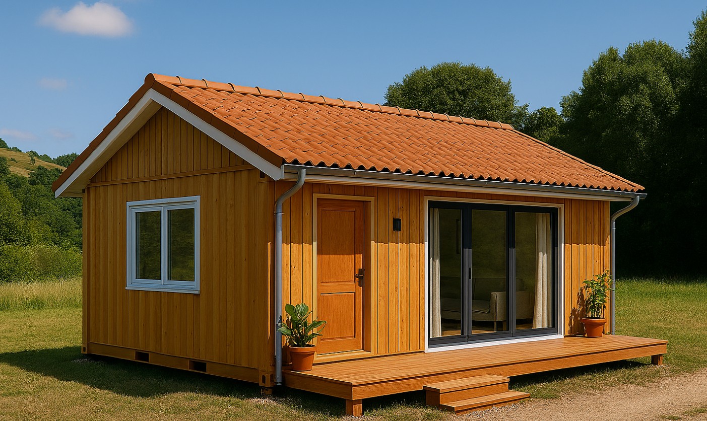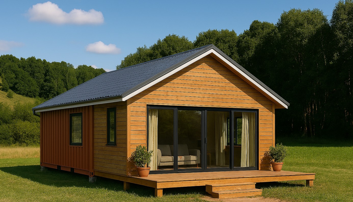 Pentru cei care preferă un aspect mai apropiat de casa tradițională, containerul modular cu placare exterioară și acoperiș în două ape este o alegere inspirată. Oțelul zincat, combinat cu lemn sau fibrociment, oferă protecție și estetică. Geamurile mari, orientate spre sud, permit o ventilare eficientă, iar culorile naturale — teracotă, lemn, gri cărbune — adaugă căldură vizuală și funcționalitate.