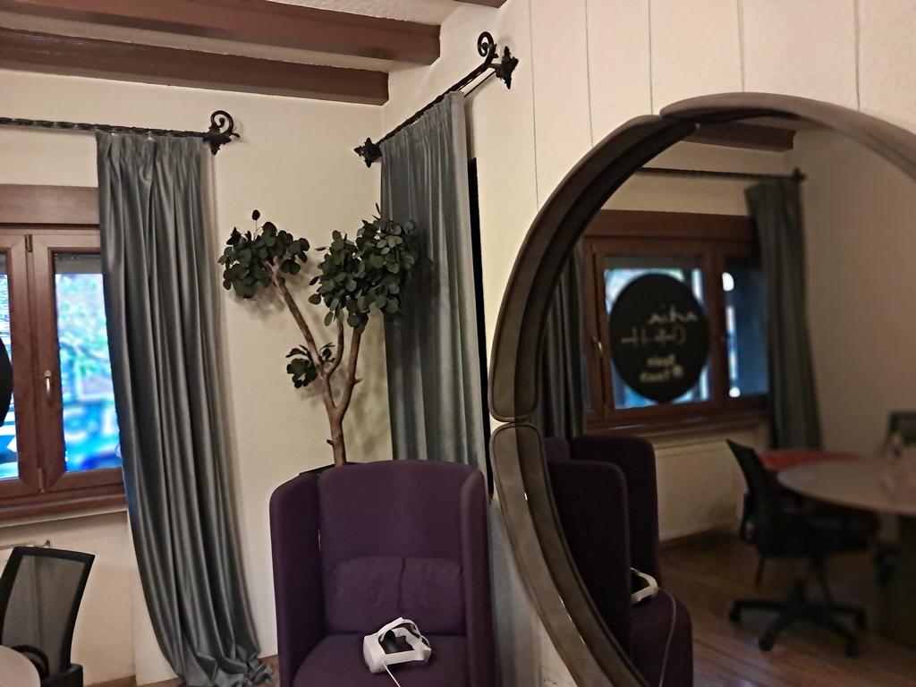 “Aici putea fi sala de mese sau biroul arhitectului, deși din informațiile noastre, acesta se retrăgea pentru lucru în căsuța cea mică din curte, în spatele blocului, unde putea să lucreze în liniște”, spune arh. Dan Buşilă