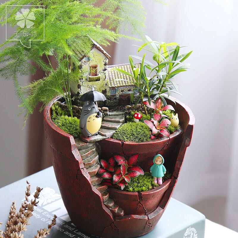 Și pentru că tot am adus vorba de plante, cele mai recomandate pentru o grădină în miniatură sunt speciile „verzi”, deoarece se întrețin ușor, rezistă mult timp și au un ritm de creștere lent. De asemenea, foarte adecvate sunt exemplarele mici (cactuși, mușchi, ficus târâtor pitic, begonie pitică, feriga pelea), precum și speciile suculente, foarte populare în ultima vreme datorită diversității lor impresionante, aspectului deosebit și îngrijirii nepretențioase.