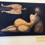 În lucrările sale apar adesea animale, siluete feminine sau elemente tradiționale reinterpretate, conturate într-un stil expresiv, viu și personal.