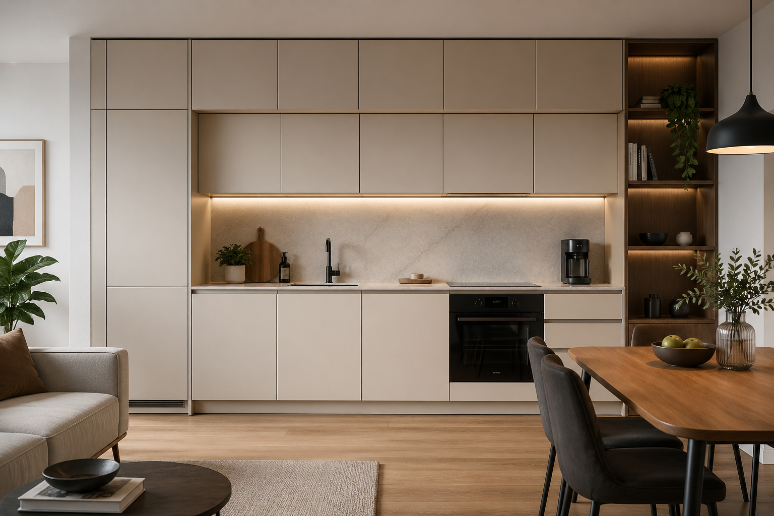 În ultimii ani, modelul începe să se schimbe vizibil. În locuințele noi și mai ales în proiectele rezidențiale premium, bucătăria este gândită ca un tot unitar. Nu mai este vorba despre unde încape un electrocasnic, ci despre cum se integrează acesta într-un ansamblu coerent.