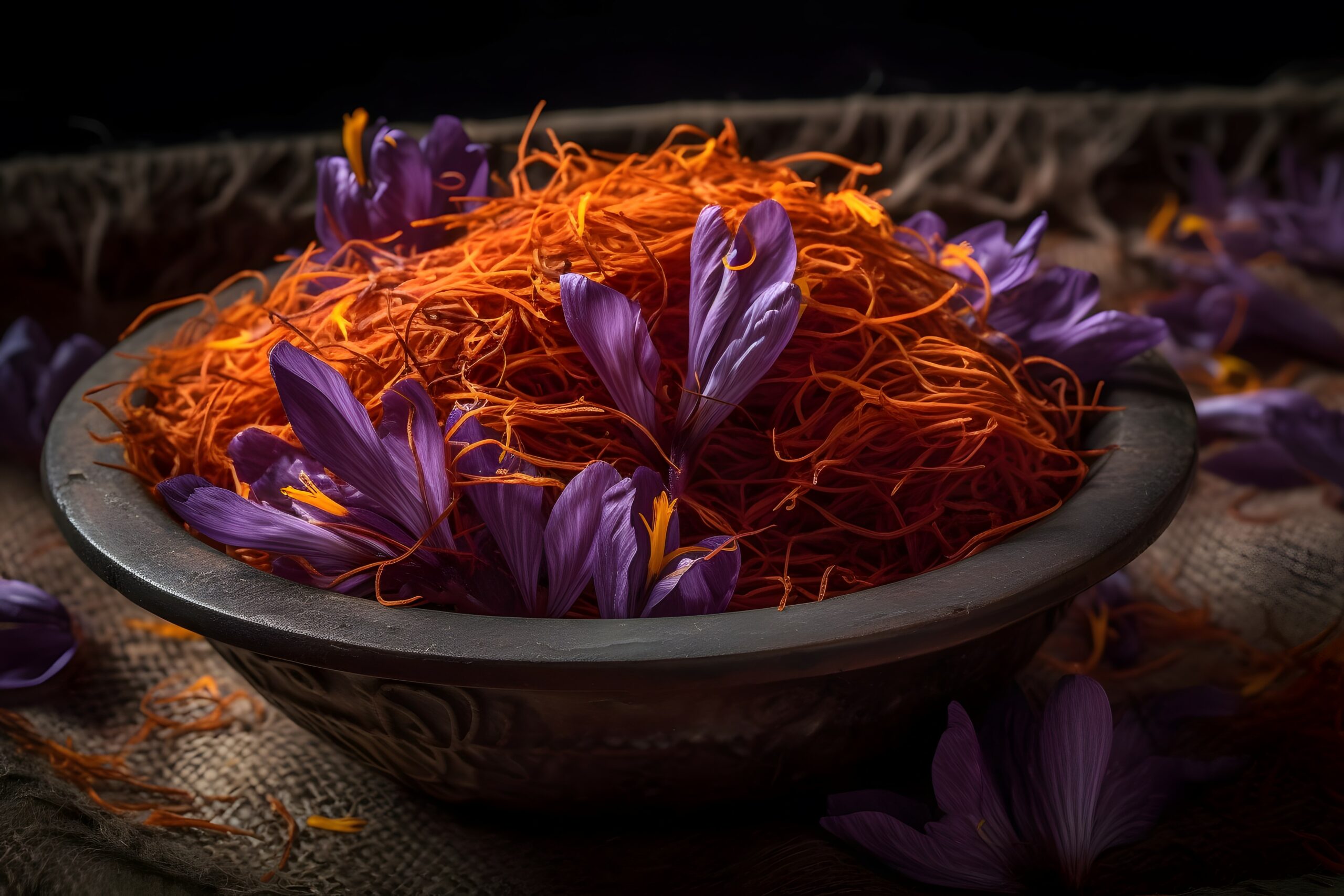 Șofranul abundă în substanțe fitochimice, în special picrocrocina, care se descompune în timpul procesului de uscare pentru a forma safranal, care îi conferă gustul distinctiv de pământ. Un alt pigment carotenoid crocin, produce culoarea galben-aurie atunci când este amestecat cu orez.