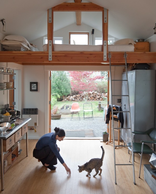 La celălalt capăt al lumii, în SUA, un garaj de 23 de metri păraţi, construit din lemn, a fost transformat de Michelle de la Vega într-un spaţiu de locuit mai mult decât confortabil. Amenajarea a costat-o 32.000 de dolari. Chiar dacă nu pare mare, Michelle se bucură de confortul unui pat mare, asta după ce a amenjat dormitorul deasupra uşii de la intrare. Iată mai jos ce a reuşit tânăra să construiască.