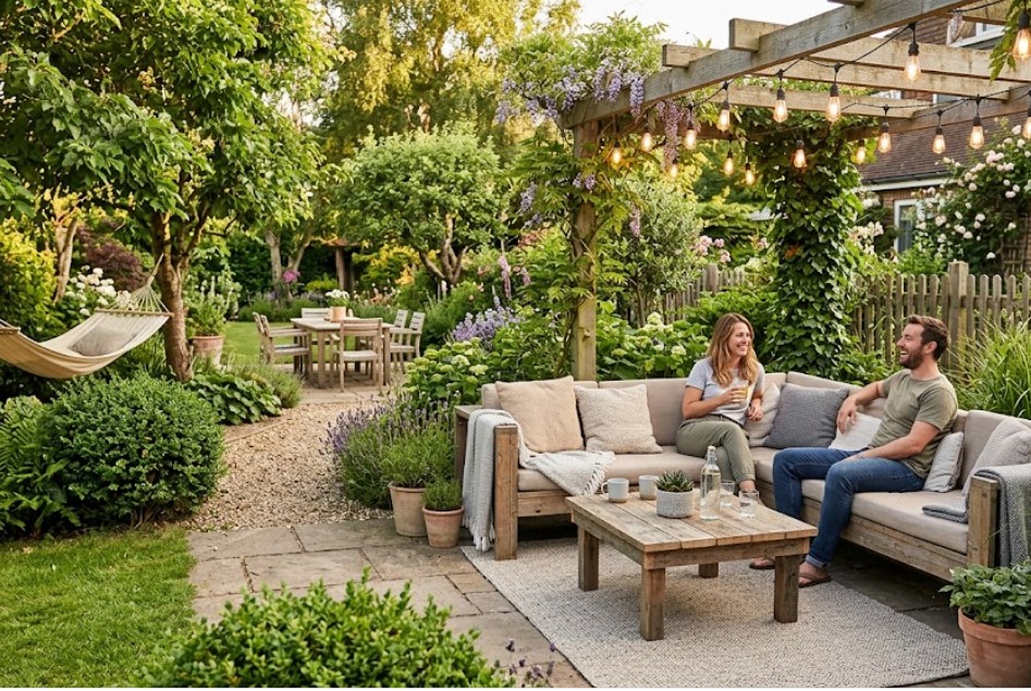 Grădina nu mai e de mult doar un fundal verde sau un loc „de bifat” lângă casă. Din ce în ce mai mulți proprietari o transformă într-un spațiu în care chiar îți vine să stai: dimineața cu o cafea, seara cu prietenii sau pur și simplu fără telefon.