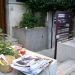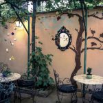 Cafeneaua se află în curtea Institutului Francez din București, Bd. Dacia, nr. 77. Decorul terasei este unul minimalist, însă se remarcă prin arhitectura clădirii care te duce cu gândul la curtea unui castel în stil mediteraneean. Amenajată cu un mobilier simplu de grădină, această terasă este plăcută pentru că oferă o atmosferă  liniștită și un decor natural de verdeață.