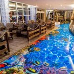 În cadrul acestui proiect de amenajare interioară au fost incluse elemente de butaforie și efecte speciale pentru a crea o atmosferă specifică. Încă de la intrarea în hotel designerii și-au pus amprenta asupra recepției, reușind să-i dea forma unei corăbii supradimensionate, în care se regăsesc întocmai detaliile specifice unei corăbii autentice, de la hublou și până la provă și saborduri. Ca să îi dea o notă de autenticitate, pe podeaua din rășină au proiectat o imagine subacvatică și pentru a fi cât mai veridică imaginea panoramică au poziționat corabia și luminile astfel încât să creeze un efect special de corabie plutitoare. Din acest motiv probabil recepția-corabie este de altfel și punctul de atracție al hotelului.
