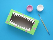 reion, desenează o gură mare cu dinți ascuțiți pe partea de sus a unei cutii goale de șervețele.