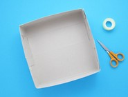 Apoi taie una dintre laturile lungi ale fiecărei cutii și lipește-le împreună cu bandă adezivă, pentru a forma o cutie pătrată.