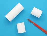 Taie cu grijă tuburile în jumătăți cu ajutorul unui cutter. Este recomandat ca un adult să se ocupe de aceasta.