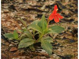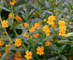 Mimulus cardinalis are flori portocalii. Crește pȃnă la 30-90 cm.