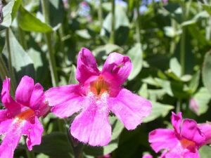 Mimulus lewisii este nativă din America de Nord. Are frunze lancelolate, de 2-7 cm. Florile roz-violet se aseamănă cu cele ale plantei gura-leului.