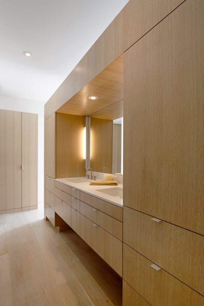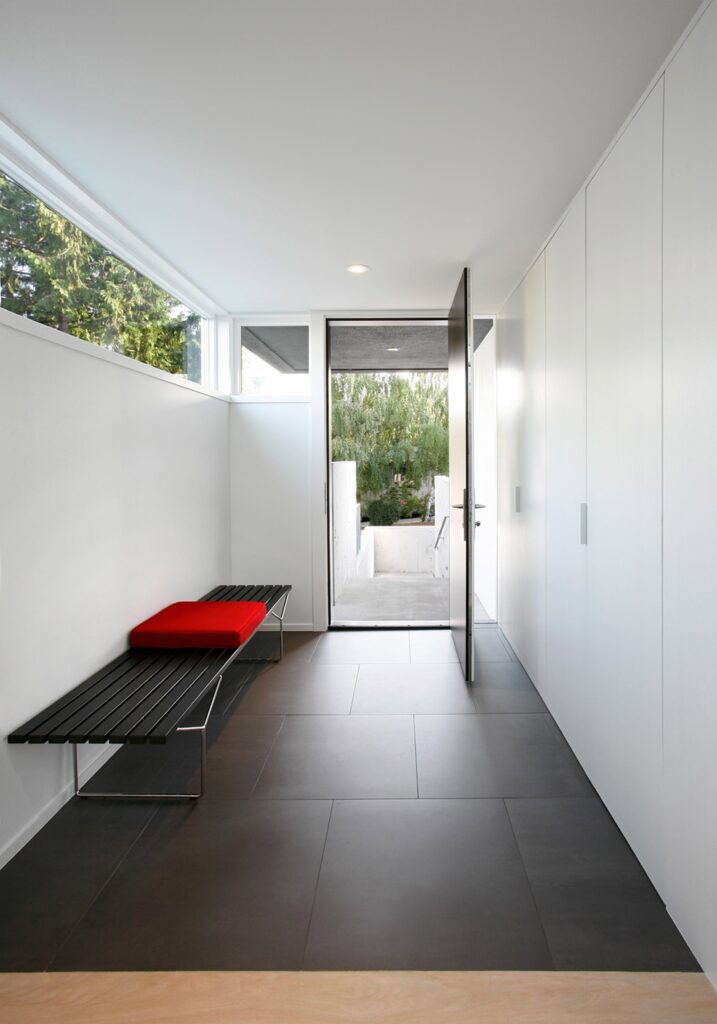 Mobilierul, în cea mai mare parte multifuncţional, păstrează atât nuanţele precum şi aceleaşi linii lungi şi drepte ale arhitecturii de exterior.