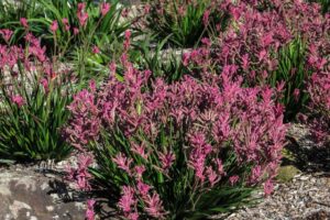- Anigozanthos Pearl cu flori roz, franjurate;