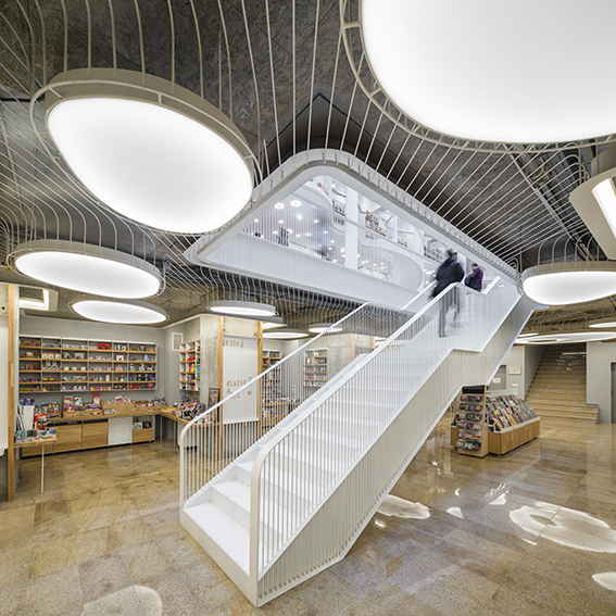 Premiul pentru cea mai bună amenajare a unui spaţiu public a mers la Sabin Dumitriu, Adrian Cancer-Zeana, Ioan Vladescu, Andrei Palita, cei care s-au ocupat de amenajare licrăriei Cărtureşti Carusel. Clădirea este situată în centrul vechi al Bucureştiului şi are o istorie lungă şi complicată. Şi-a început existenţă la sfârşitul secolului 19 ca sediu de bancă, între 1950 şi 1990 a găzduit un magazin de îmbrăcăminte, iar ulterior a fost abandonată. Acum a recăpătat viaţă ca librărie. Ne-am raportat la cladire ca la un element permanent si la interventia noastra ca un fragment din istoria sa. S-a creat o formă organică fluidă care şerpuieşte printre elementele structurale existente, se retrage în spatele stâlpilor şi se extinde în spaţiile dintre aceştia.