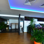 Și de la etajul 9 al Hotelului Tulip Inn de pe Strada Nerva Traian se poate admira o priveliște frumoasă asupra capitalei. Restaurantul Avantgarde nu are terasă dar clienţii care servesc cina sau prânzul se pot bucura de peisajul aerian de la masă. Localul arată bine, este decorat modern, în nuanţe calde de bej, cu lumânări pe mese şi alte decorațiuni interesante.