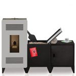 Sistemul modular din care face parte șemineul include spațiu special pentru depozitarea rumegușului, vătrai cu suport, cabinete cu rafturi, are capacitate pentru 15 kg de peleți, telecomandă pentru igniție automată și ușă dublă cu sistem magnetic de închidere, pentru mai multă siguranță. Prețul șemineului pornește de la aproximativ 1.500 $.