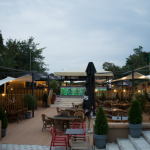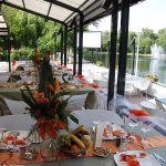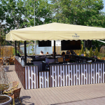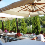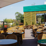 Terasa de pe malul lacului este foarte frumoasă, aici se poate servi mâncare cu specific internațional. Localul dispune de o suprafață generoasă, peste 1600 mp unde se organizează și evenimente private. În 2005 s-a renovat acest local, sub îndrumarea unui designer român, cu mobilier nou adus din Franța și corpuri de iluminat făcute pe comandă. Terasa este decorată cu flori, arbuști și alte plante care creează un ambient plăcut, însă cel mai interesant aspect rămâne faptul că se află pe malul lacului din parc și în plin spațiu verde.