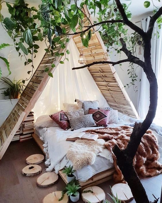 Seturile de mobilier sau obiectele realizate în serie nu au ce căuta într-un ambient BoHo. Dimpotrivă, cel mai recomandat este să apelezi la piese desperecheate, din game diferite și în stiluri diferite, care, puse unele lângă altele, să ofere spațiului o amprentă personală. Pentru a obține această unicitate atât de căutată, cel mai bine ar fi să mizezi pe lucruri bricolate, modificate și decorate chiar de tine (de exemplu, un mobilier făcut din paleți).