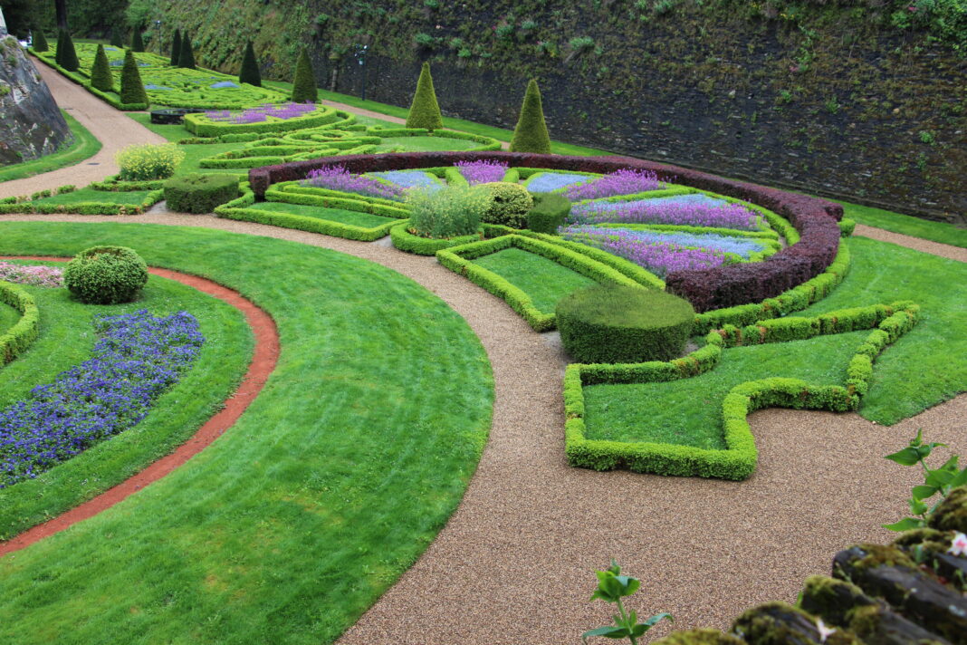 Parterele sunt zone plate, desenate cu precizie și umplute cu plante joase, uneori colorate, care creează efecte grafice deosebite — numite „broderii vegetale”. Acestea se văd cel mai bine de la înălțime sau dintr-un punct de observație central.