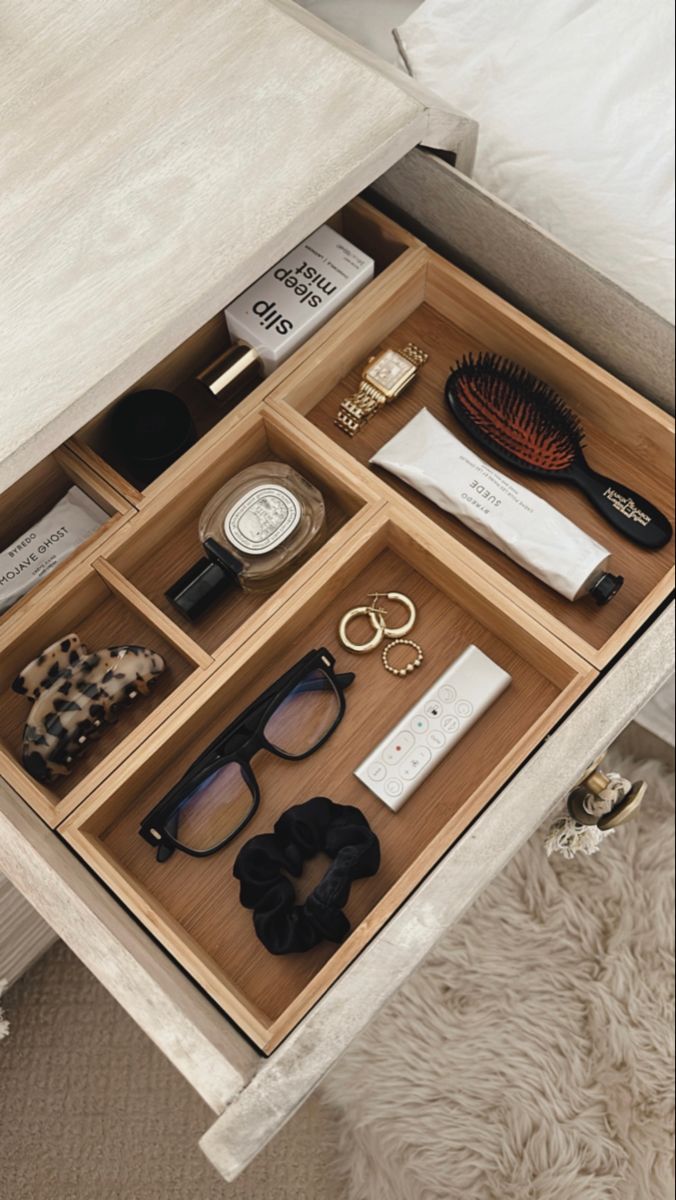 În această categorie putem include lucrurile care stau în general doar pe noptieră, precum telecomanda, încărcătorul de telefon, un suport de pahar, ochelari de vedere sau un ceas.