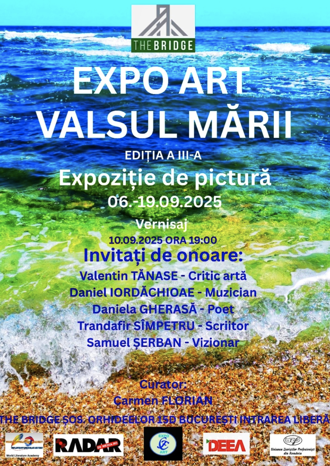 EXPO ART continuă tradiția de a aduce arta mai aproape de public și prezintă cea de-a treia ediție a expoziției de pictură „VALSUL MĂRII”. Evenimentul, organizat de artista și curatorul Carmen Florian, transformă spațiul expozițional într-un loc al emoțiilor și al conexiunilor dintre artiști și mare.