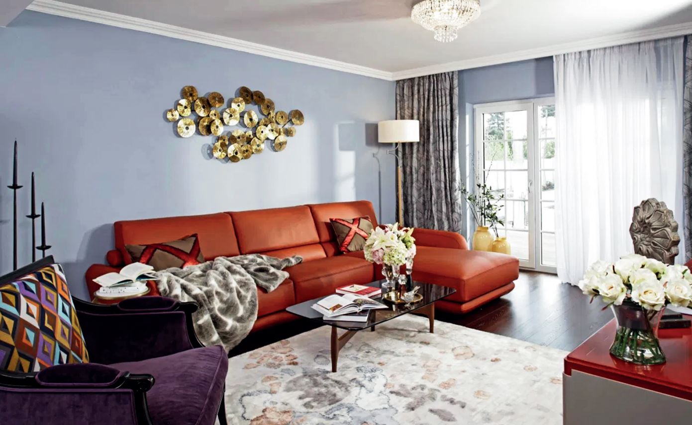 Prezența culorii Living Coral conferă spațiului o tentă de eleganță și o influență contemporană. De altfel, camera de zi este o explozie de culori, cu nuanțe vii de portocaliu și violet. Mobilierul de înaltă calitate prezintă o gamă largă de materiale textile și finisaje, făcând din combinația de texturi și culori o uimire pentru simțuri.