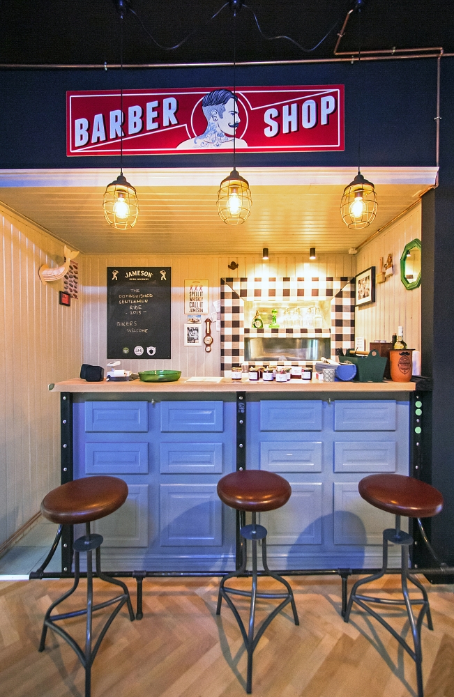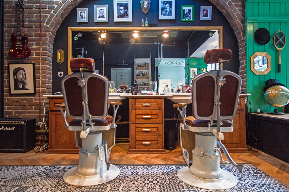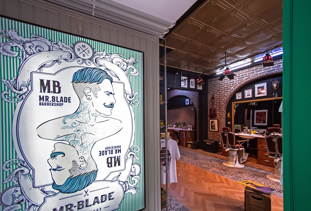 Fizeria Mr. Blade Barber Shop respiră un stil retro-industrial, cu scaunde de pe vremea comunistă, pe care puştii de astăzi nu au apucat să le vadă. A fost amenajat şi un spaţiu unde clienţii pot savura o cafea sau suc.