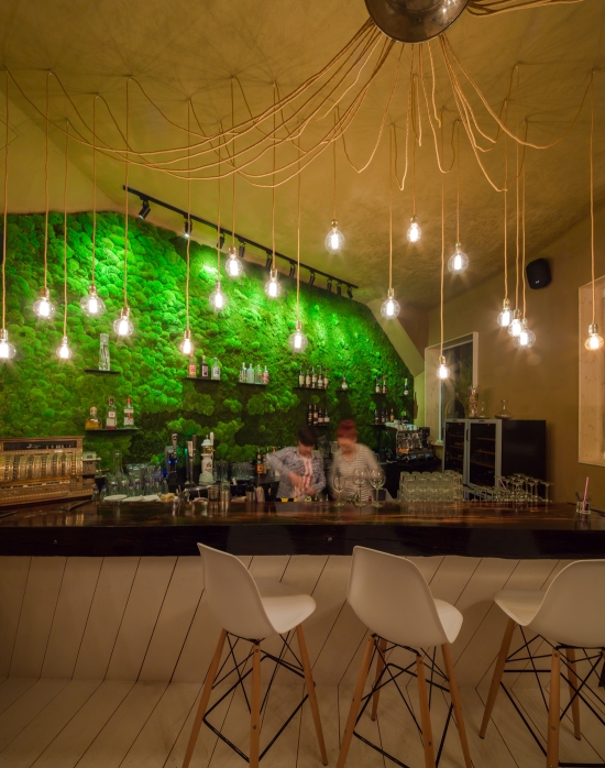 Conceptul vizual Bufniţa Din Tei s-a născut ca o necesitate de refugiu al acestui cotidian citadin bucureştean. Minimalismul formal invită la introspecţie creativă. Lemnul natural neprelucrat aduce mirosul unei lumi pierdute. Verdele şi galbenul sunt invitaţia într-o lume pozitivă, veselă, prietenoasă şi creativă. Oglinda este elementul care ne provoacă la autoanaliză, la o atenţie a sinelui mai profundă. Linia desenului este numitorul comun cu generaţia contemporană: tineri frumoşi, entuziaşti, spirite libere, pregătite să schimbe din rădăcini vechile blocaje sociale.