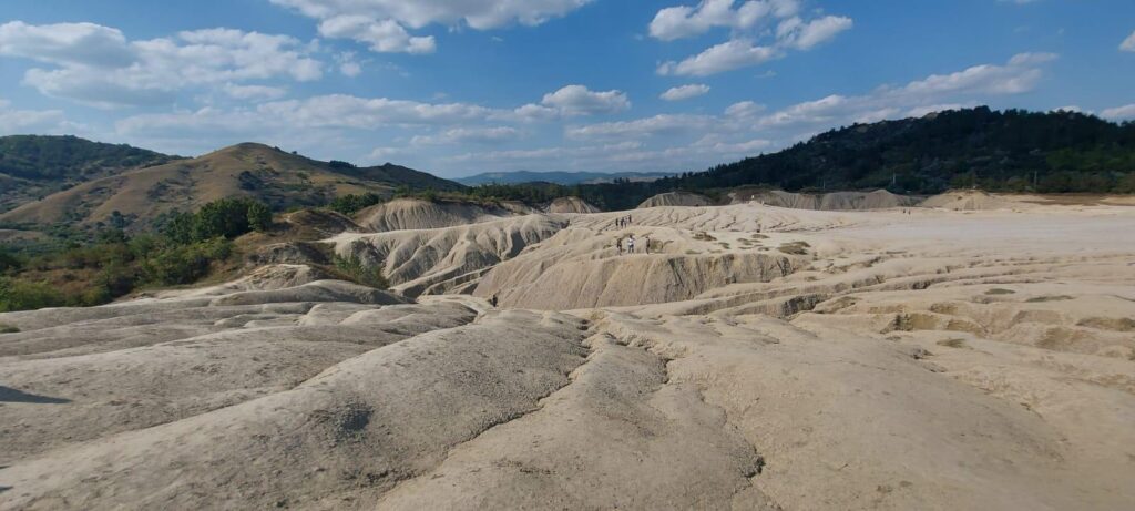 Pe masură ce ne apropiem de zona vulcanilor, drumul începe să șerpuiască printre dealuri cu tufe de măceș, gherghin și cătină care la un moment dat, fac loc unor pante abrupte, acoperite cu noroi gri și brăzdate de șanţuri adȃnci ce crează o imagine bizară, cu un farmec de poveste. Noroiul iese la suprafaţă prin mici cratere, din care ţȃșnește sau se scurge liniștit.